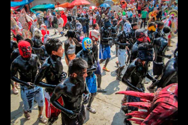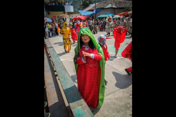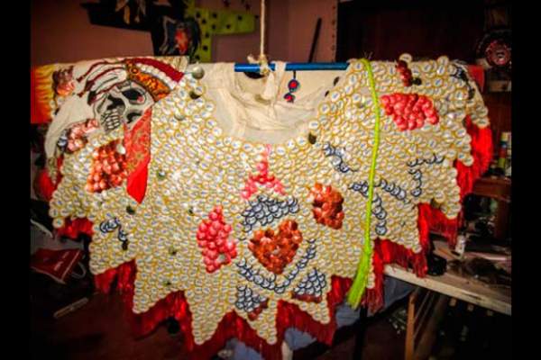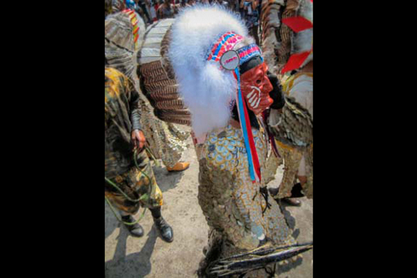 El “traje de comanche” se remonta a un origen mítico, cuando los tepehuas viajaban en busca de un lugar para asentarse. Durante su traslado se encontraron con diferentes seres, entre ellos los “comanches”, una especie de soldados que portaban trajes llamativos y emitían sonidos desconocidos. Los tepehuas en aras de preservar la memoria de lo acontecido en esos tiempos, copiaron su vestimenta, y desde entonces forman parte de los personajes emblemáticos de la fiesta del Carnaval. El “traje de comanche” está elaborado con centenares de corcholatas, las cuales son comúnmente calentadas en un comal, se aplanan y se cosen a un vestido o falda de manta formando diferentes diseños. Lleva una máscara, tocado de plumas, un arco de tiro, una lanza y un cinturón-carcaj. En el marco de la festividad del Carnaval, se cree que los “comanches” son los encargados de buscar a Cristo, quien se esconde detrás de una palma para evitar ser apresado. A lo largo de ocho días, los “comanches” gritan, saltan y dan giros al ritmo de sones especialmente compuestos para ellos, además se les ve acompañados de otros personajes como “diablos”, “indios”, “coludos” y parodias de santos católicos y mestizos.