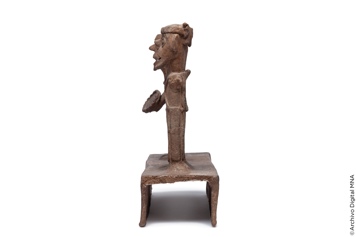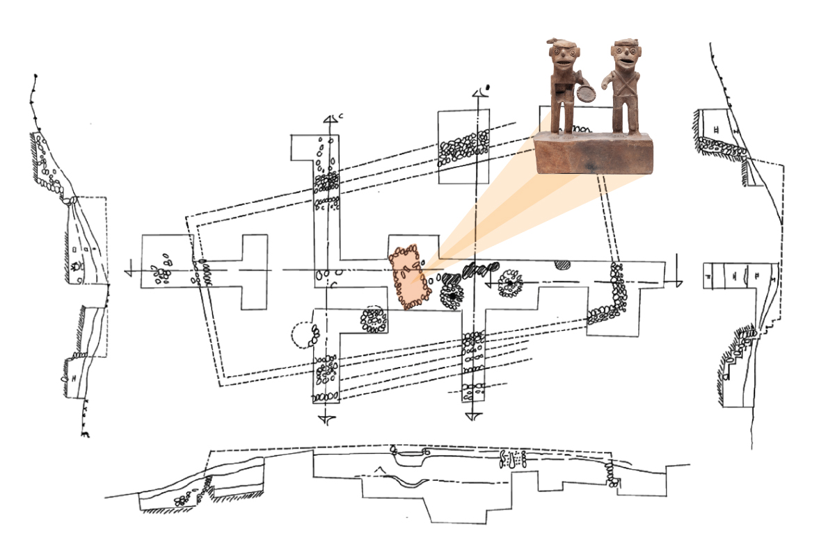 Esta pieza fue hallada en el antiguo asentamiento de El Pochote, en el estado de Guerrero. La figura se encontraba en el interior de una oquedad rectangular recubierta de piedras en el centro de la Estructura 12, junto con otras tres figuras similares, una vasija y restos de carbón y ceniza.