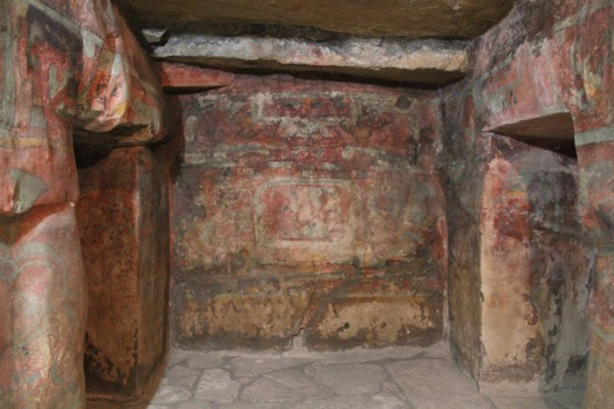Una posible explicación de la presencia de los cascabeles en la ofrenda es la que refiere que los zapotecos utilizaban los sepulcros en diferentes ocasiones. De aquí que la máscara del personaje jaguar, que corresponde al estilo propio de este grupo de la época clásica tardía de 800 d.C., pueda tener como parte de la ofrenda los cascabeles posclásicos de cerca del 900 d.C., los cuales pudieron llegar a Monte Albán durante la invasión de los mixtecos a los valles centrales.