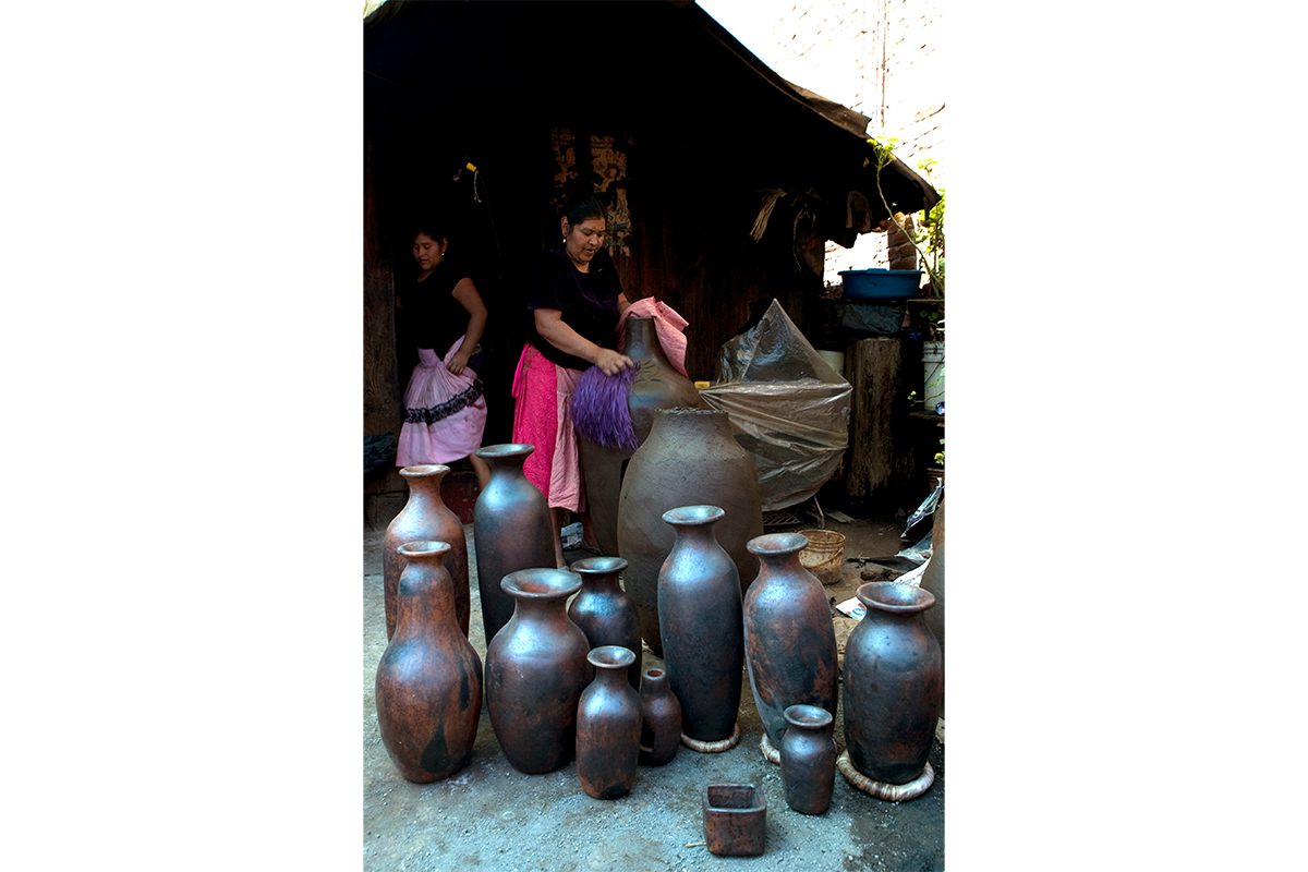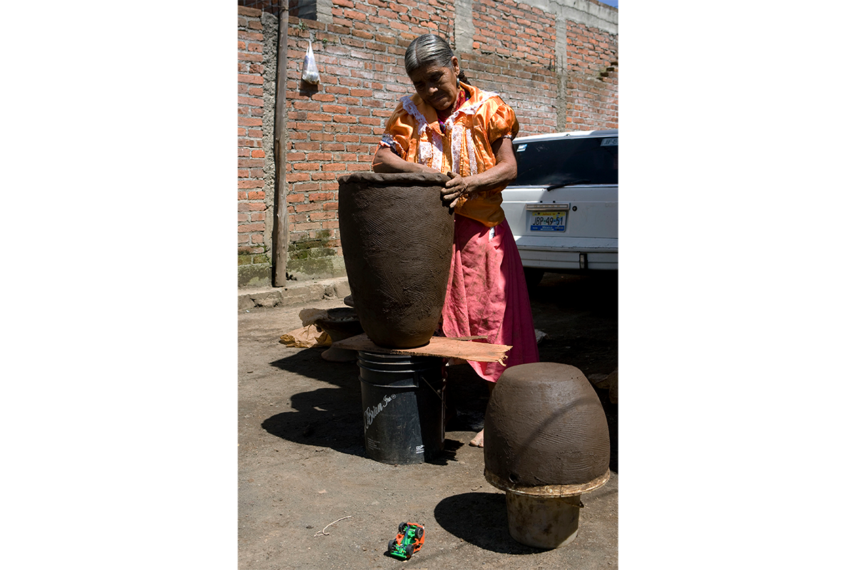 En contraste, las ollas de gran altura y diámetro, como la que aquí se presenta, de la autoría de Naná Juana Flores, responden principalmente a la demanda externa. Aunque en ocasiones se utilizan en templos, capillas y edificios públicos de Cocucho y poblaciones cercanas, su comercialización ocurre mayormente a través de acaparadores o mediante ventas directas en tianguis regionales y talleres locales, donde compradores externos acuden expresamente en busca de estas piezas. Algunas se elaboran especialmente para participar en concursos artesanales; tal es el caso de esta olla, que obtuvo el primer lugar en un concurso nacional de arte popular, en la categoría de barro natural en el año 2015.